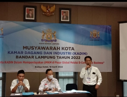 Kamar Dagang dan Industri (KADIN) Bandar Lampung menggelar Musyawarah Kota (Muskot) tahun 2022 untuk pemilihan Ketua Umum serta Pembentukan Kepengurusan KADIN Kota Bandar Lampung periode 2022-2027 di Batiqa Hotel. Senin, (18/04/2022).