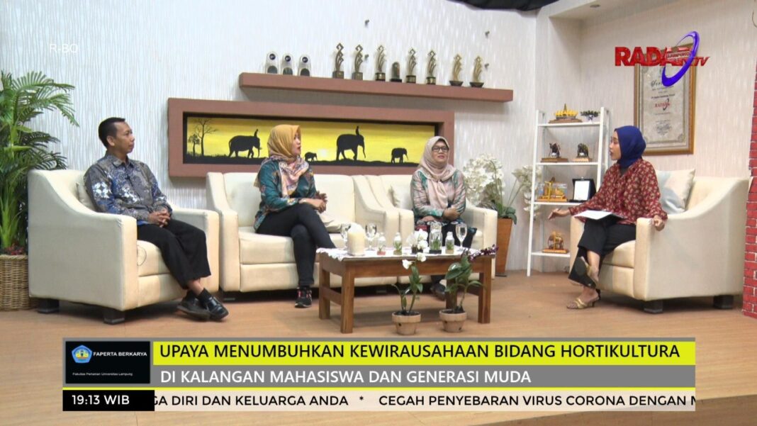 Pada program tersebut Ir. Rugayah, M.P., Ir. Setyo Widagdo, M.Si., dan Dr. R.A. Diana Widiastuti, S.P., M.Si., menjadi narasumber dengan tema “Upaya Menumbuhkan Kewirausahaan Bidang Hortikultura di Kalangan Mahasiswa dan Generasi Muda”.