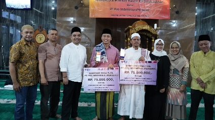 Selain bantuan dana operasional ATM beras Miftahul Jannah, pada kesempatan yang sama Pos Indonesia juga memberikan bantuan Rp 75 juta untuk operasional Masjid Al Barokah Jagabaya, Way Halim,