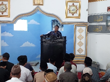 Kepala Divisi Pemasyarakatan Kantor Wilayah Kemenkumham Lampung, Dr. Farid Junaedi mengisi ceramah siang setelah pelaksanaan solat Zuhur berjamaah di Masjid At-Taubah Lembaga Pemasyarakatan Kelas IIA Kalianda, Kamis (6/4).