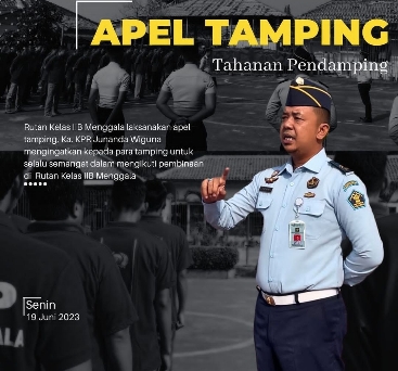 Kepala KPR Rumah Tahanan Negara Kelas IIB Menggala, Junanda Wiguna menggelar megiatan rutin Apel Tamping untuk pengecekan jumlah tamping dan mengingatkan kepada para tamping untuk selalu tingkatkan kedisiplinan dan kebersihan kamar masing-masing, Senin (19/06/2023)