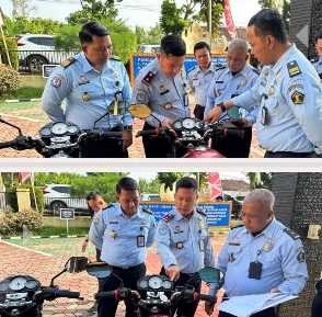 Kepala Kantor Imigrasi Kelas II Non TPI Kotabumi, Imam Setiawan pimpin secara langsung Apel Kendaraan Dinas yang digelar di halaman kantor Imigrasi untuk melakukan pengecekan dokumen setiap pemegang kendaraan, Senin (17/07).