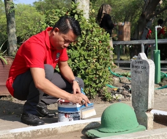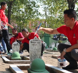 Tampak seluruh pegawai kompak dibagi beberapa kelompok. Sebagian membersihkan Taman Makam Pahlawan dan sebagian lagi mengecat pusara makam para Pahlawan. Kegiatan bersih-bersih tersebut dikomando langsung oleh Kalapas Ngawi Gowim Mahali.