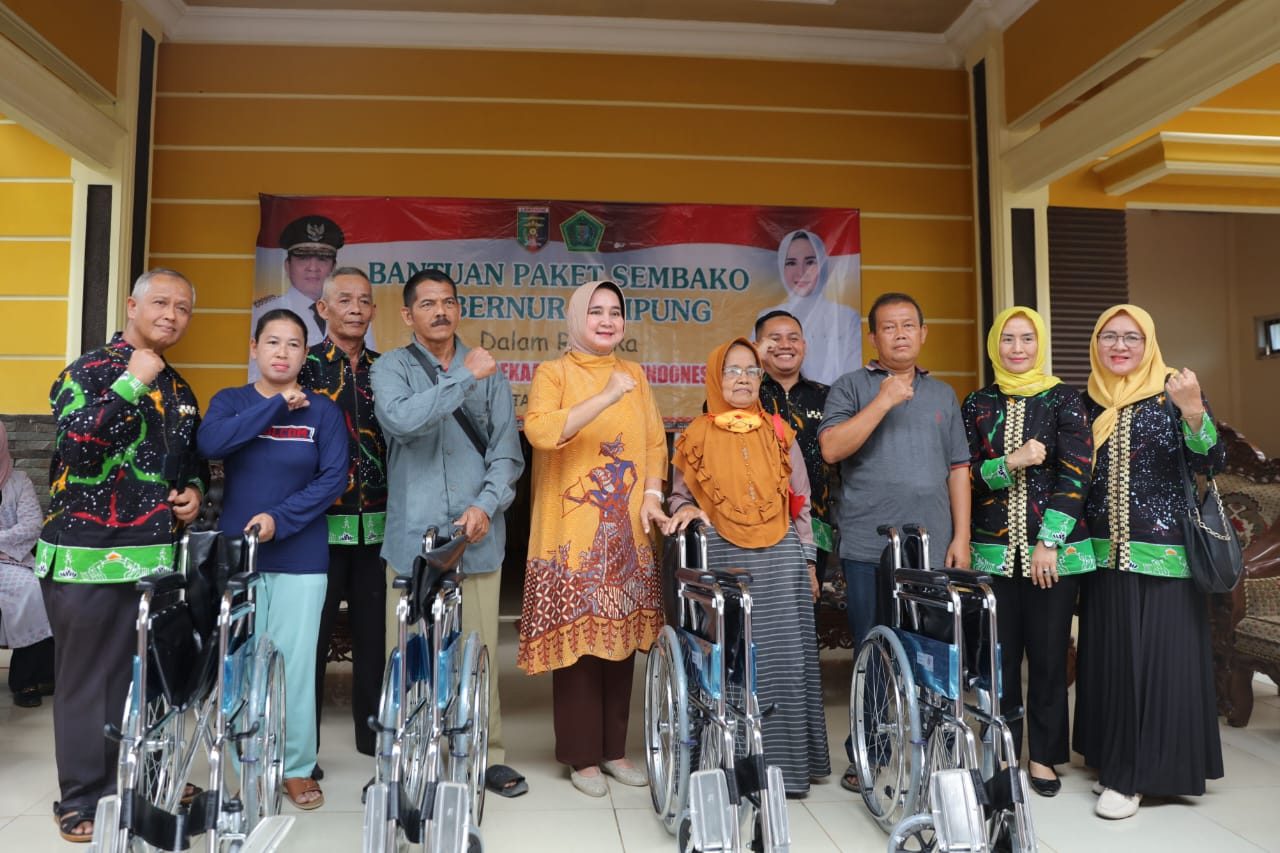 Ketua Lembaga Koordinasi Kesejahteraan Sosial (LKKS) Provinsi Lampung Ibu Riana Sari Arinal memberikan bantuan 5 unit kursi roda kepada warga lansia dan disabilitas di Kabupaten Lampung Utara serta ratusan bantuan paket sembako kepada warga yang membutuhkan.