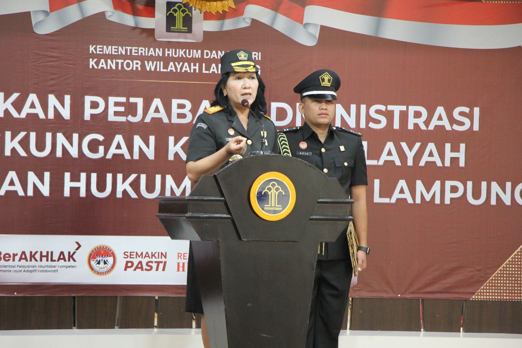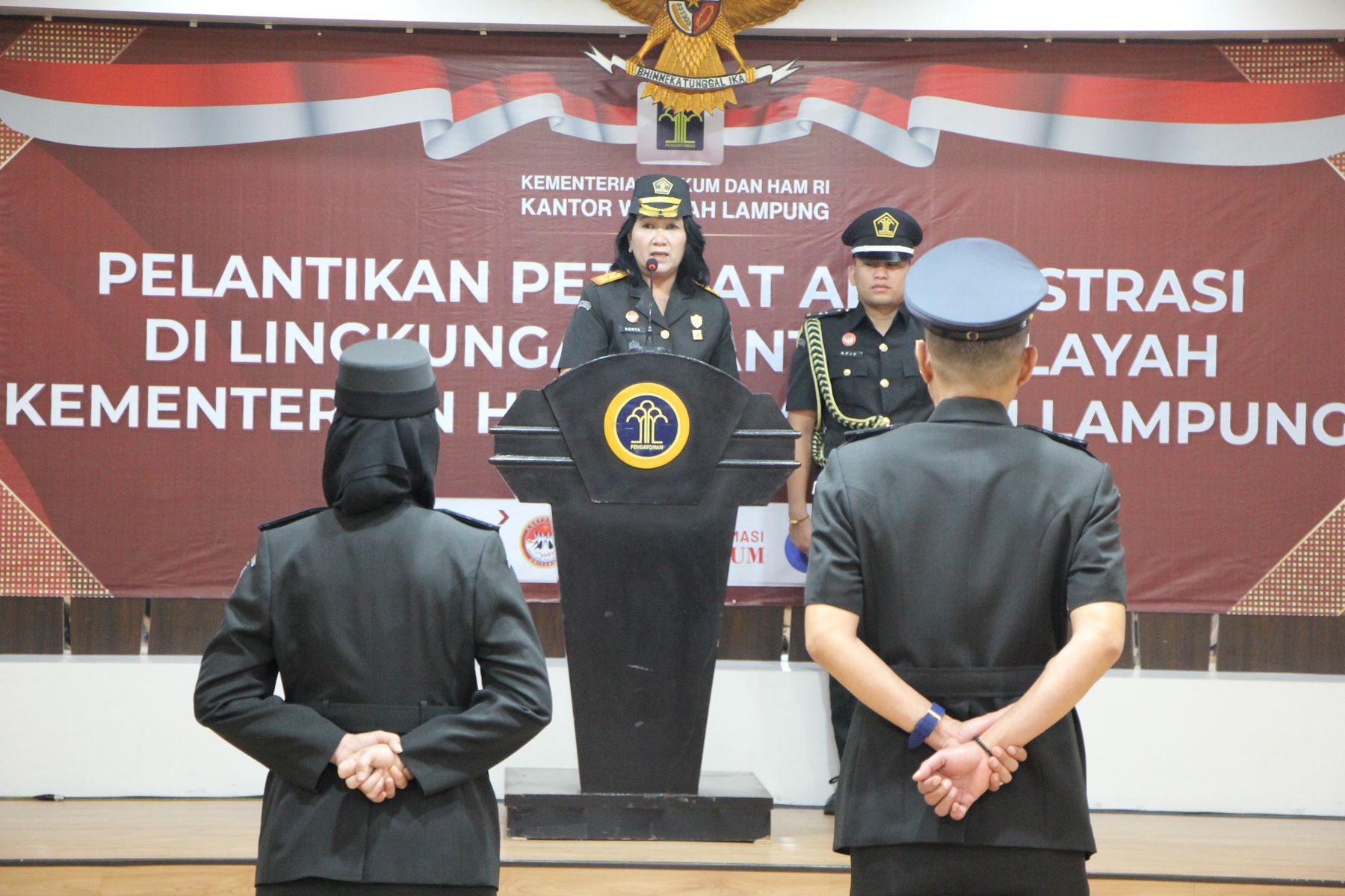 Kepala Kantor Wilayah Kementerian Hukum dan Hak Asasi Manusia Lampung, Sorta Delima Lumban Tobing melantik dan mengambil sumpah Jabatan Administrasi bertempat di Ruang Aula Lingkungan Kanwil Kemenkumham Lampung bertempat, Jumat (01/12).