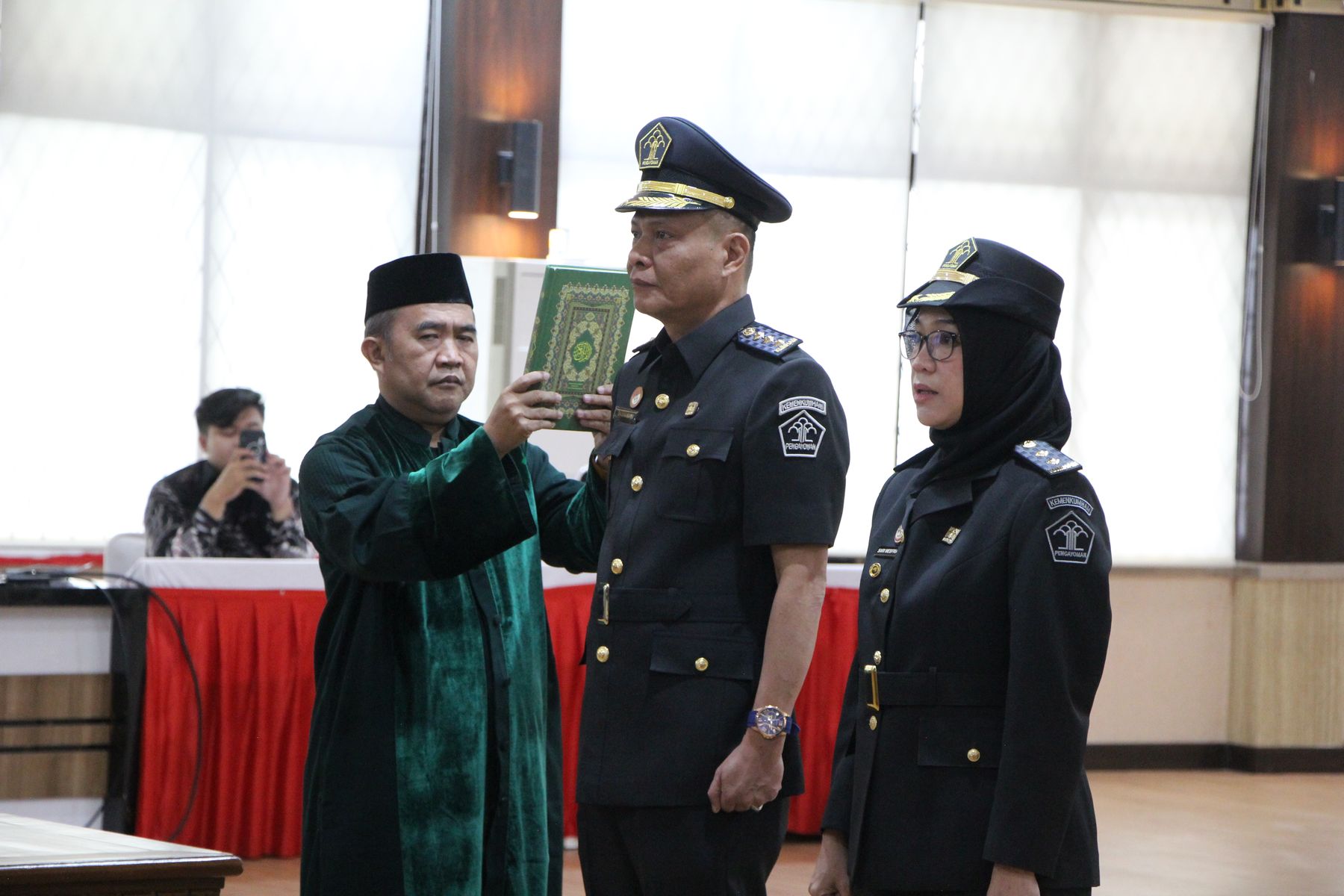 Pelantikan dan pengambilan sumpah dipimpin secara langsung oleh Kakanwil Sorta Delima Lumban Tobing, serta menjadi saksi Kepala Bidang Hukum Rugun Tresia Oktaviani Pakpahan dan juga Kepala Bidang Perizinan & Informasi Keimigrasian Mirza Akbar.