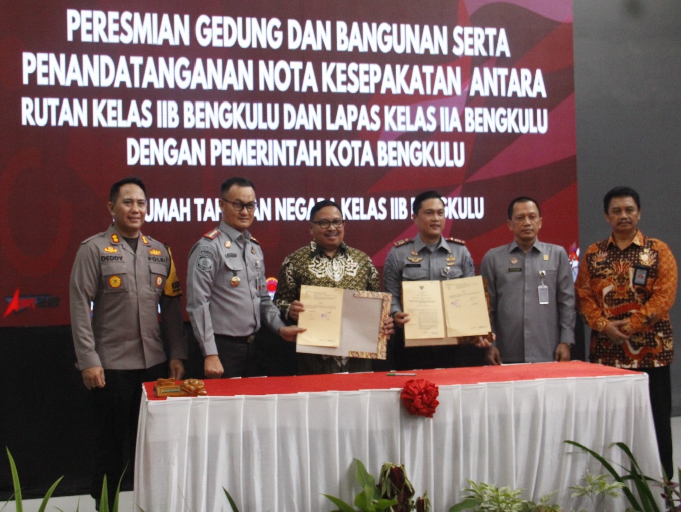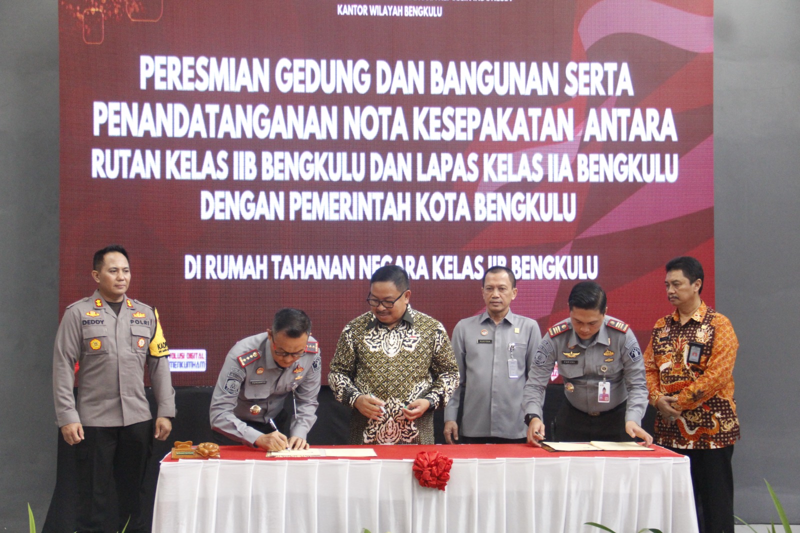 Dalam rangka meningkatkan kualitas pelayanan di Rumah Tahanan dan Lembaga Pemasyarakatan, Jum’at (29/12) Kepala Rumah Tahanan Negara Kelas IIB Bengkulu, Farizal Antony bersama Kepala Lembaga Pemasyarakatan Kelas IIA Bengkulu, Yuniarto menandatangani Nota Kesepakatan dengan Pemerintah Kota Bengkulu.