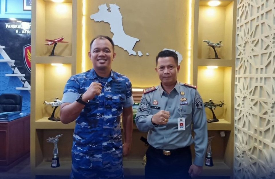 Kepala Lembaga Pemasyarakatan (Kalapas) Kelas IIB Tanjungpandan Gowim Mahali melakukan kunjungan ke Markas Komando Pangkalan TNI Angkatan Udara (Lanud) H. AS Hanandjoedin, Rabu (27/12). Kunjungan ini dilakukan Kalapas untuk menjalin silaturahmi dan memperkuat sinergitas Lapas dan TNI / Polri.