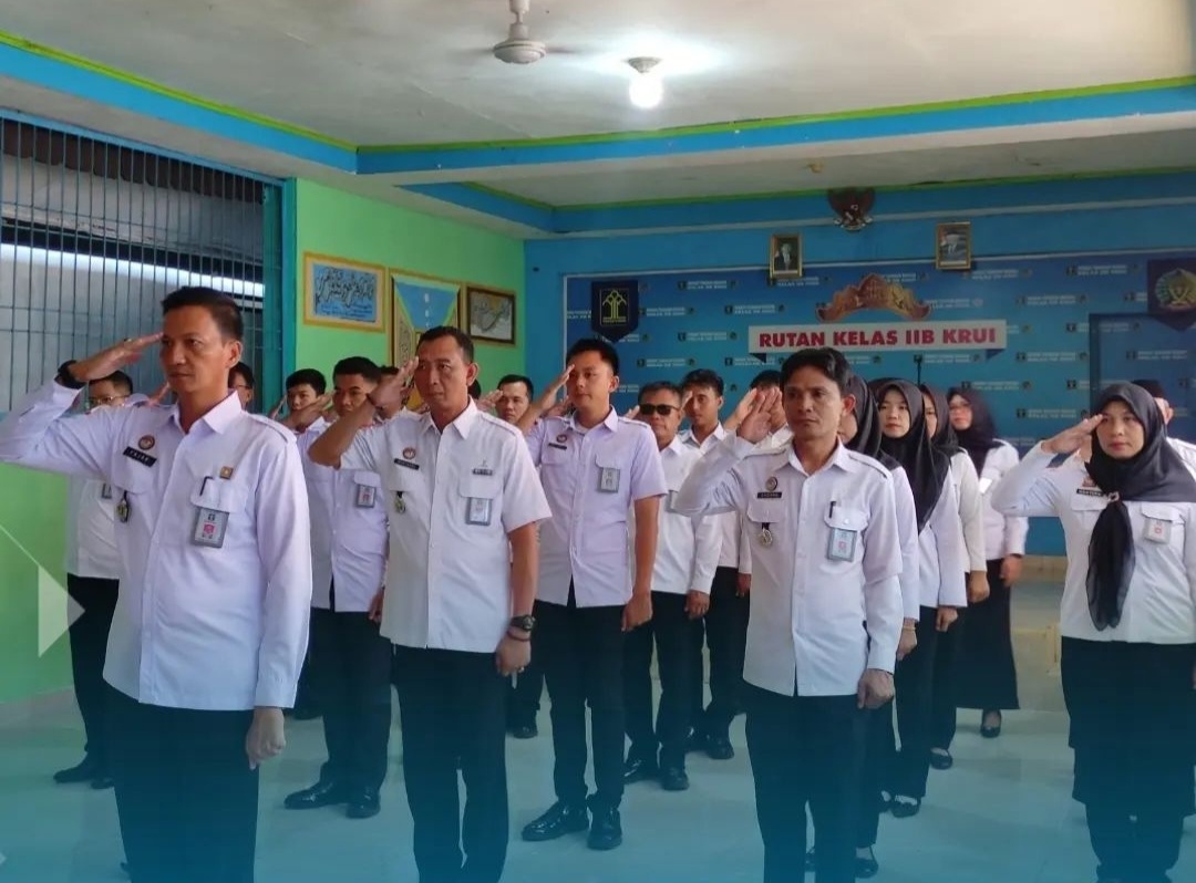 Rumah Tahanan Negara (Rutan) Kelas IIB Krui mengikuti Apel Awal Tahun 2024 di lingkungan Kementerian Hukum dan HAM RI secara Virtual di Aula Rutan Krui dengan resolusi tahun 2024 “Perkuat sinergi yang semakin PASTI dan BerAKHLAK untuk kinerja kemenkumham yang berdampak”. Kegiatan dihadiri oleh Kepala Rutan Krui, Pejabat Struktural dan Jajaran Staf Rutan Krui, Jumat (05/01/2024).