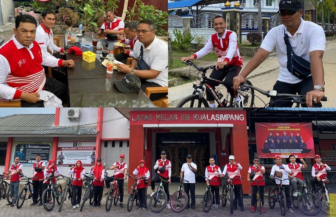 Dalam rangka menjaga kebugaran jasmani para pegawai, Lembaga Pemasyarakatan Kelas (Lapas) IIB Kualasimpang Laksanakan sepeda santai bersama para pejabat struktural dan staff, Jumat (19/01/2024).