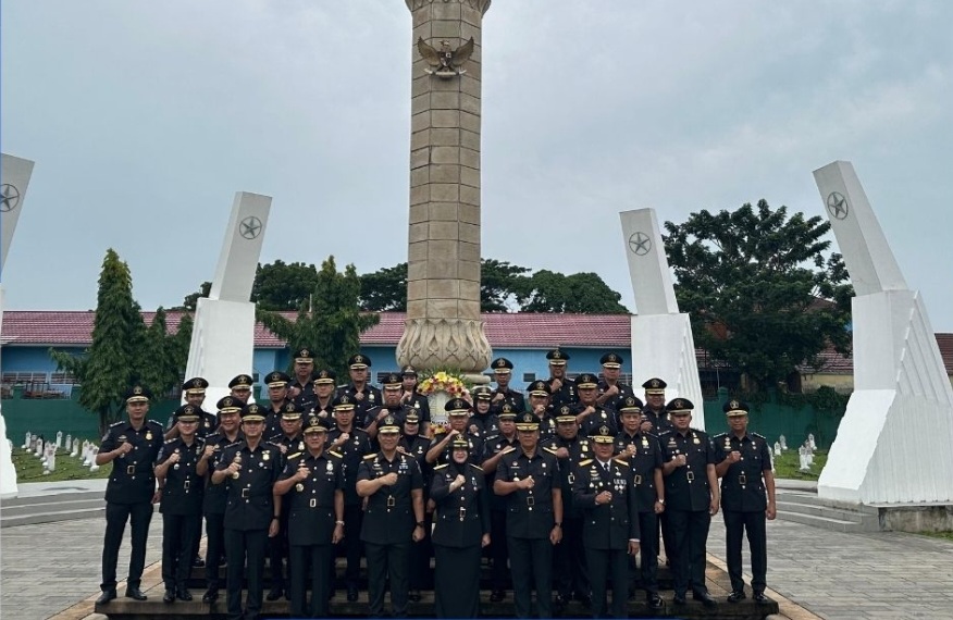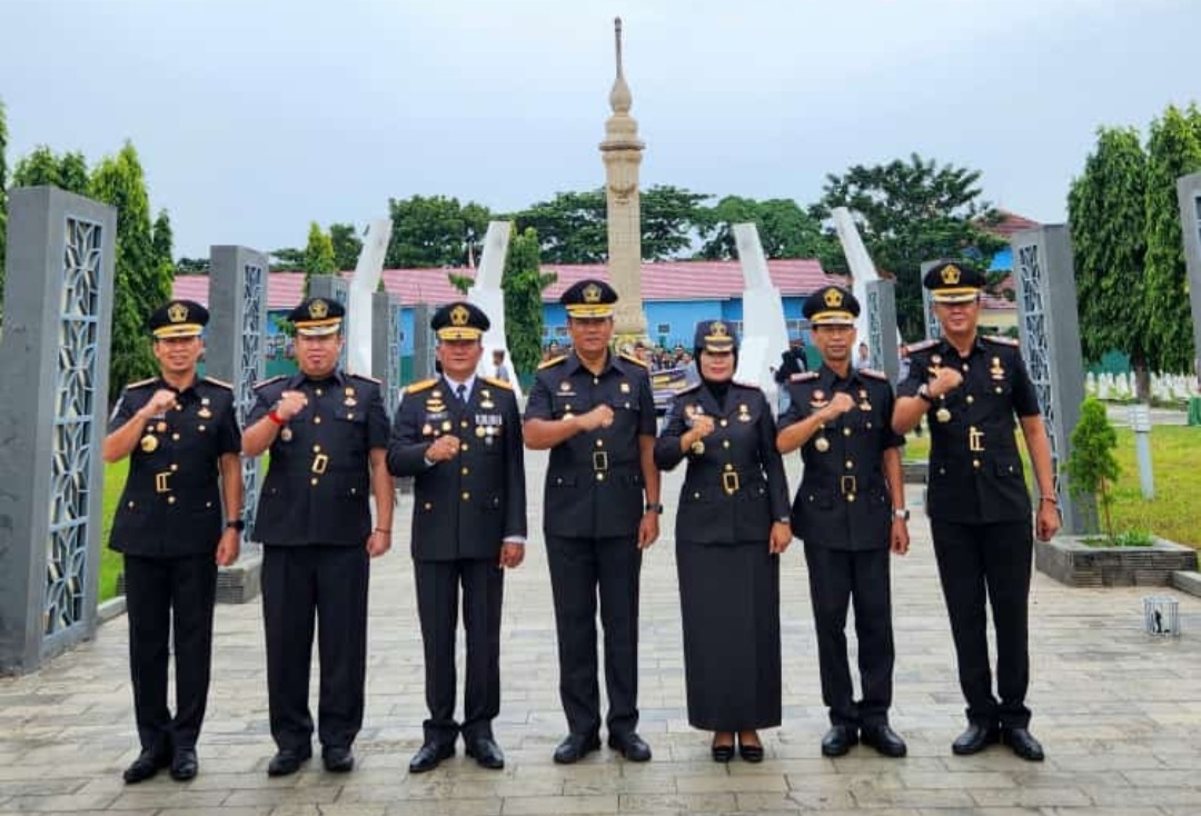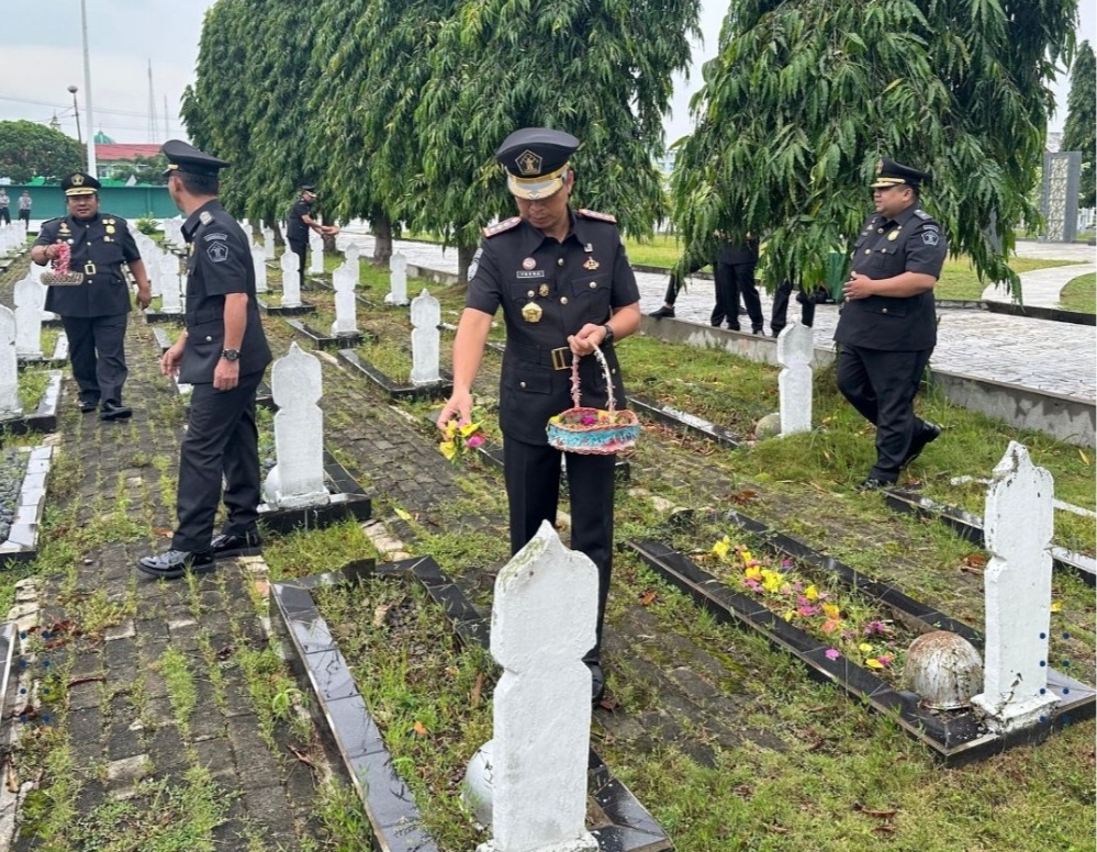 Jajaran Lembaga Pembinaan Khusus Anak Kelas I Palembang ikut berpartisipasi dalam upacara tabur bunga di Taman Makam Pahlawan Ksatria Ksetra Siguntang Palembang dalam rangka peringatan Hari Bhakti Imigrasi Ke-74 tahun 2024, Rabu (24/01)