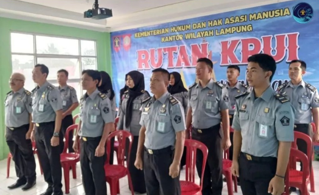 Kegiatan bertempat di Aula Kanwil Kemenkumham Lampung dihadiri oleh Kepala Rutan Kelas IIB Krui, Fajar Ferdinan A.Md.IP., S.H., M.H. dan diikuti secara daring oleh jajaran pegawai Rutan Krui.