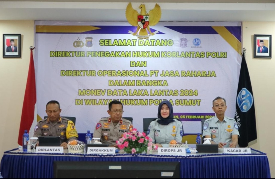Jasa Raharja dan Korlantas Polri menggelar Monitoring dan Evaluasi (Monev) Data Kecelakaan Lalu Lintas tahun 2024 di wilayah hukum Polda Sumatera Utara. Agenda tersebut dilaksanakan di Aula Kantor Jasa Raharja Cabang Sumatera Utara, pada Senin, (05/02/2024).