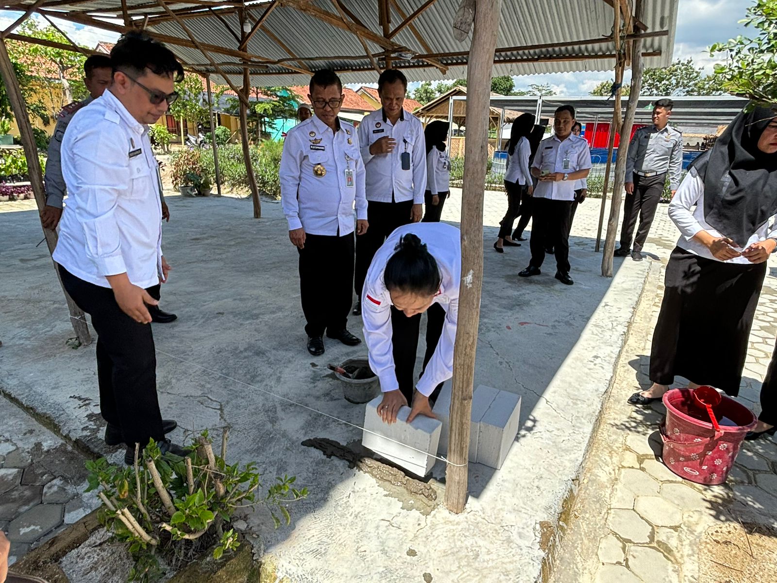 Kepala Kantor Wilayah Kementerian Hukum dan HAM Lampung, Sorta Delima Lumban Tobing, memimpin kegiatan peletakan batu pertama ruang layanan terpadu pembinaan pemasyarakatan. Acara ini berlangsung di Kompleks Pemasyarakatan Wayhui (Griya Abhipraya). Rabu, (07/02/2024).