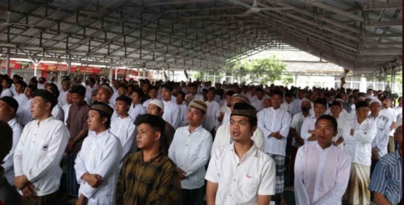 sebanyak 1500 santri yang merupakan warga binaan beragama muslim hadir mengenakan atasan putih dengan kopyah. Serentak para santri ini melantunkan sholawat nabi diiringi hadroh Al Munajat.