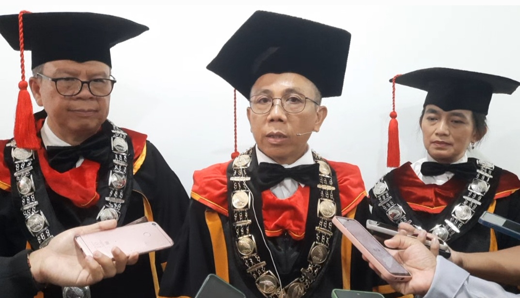 Rektor Itera didampingi Wakil Rektor Bidang Akademik dan Kemahasiswaan Prof. Dr. Eng. Khairurrijal, M.Si., dan Ketua Senat ITERA Dr. Sunarsih, M.A.,