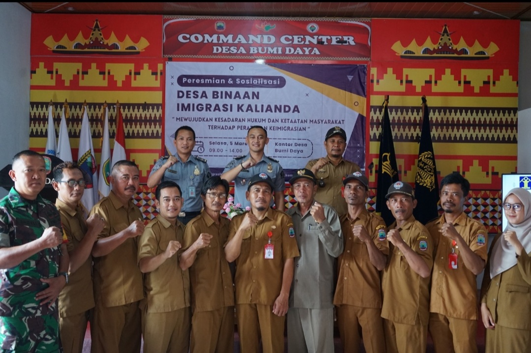 Kantor Imigrasi Kelas III Non TPI Kalianda melakukan Peresmian dan Sosialisasi Desa Binaan Imigrasi yang dilaksanakan di Aula Kantor Desa Bumi Daya dengan tema “Mewujudkan kesadaran hukum dan ketaatan masyarakat terhadap peraturan keimigrasian” pada, Selasa 05 Maret 2024.