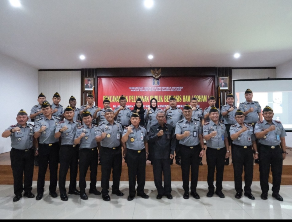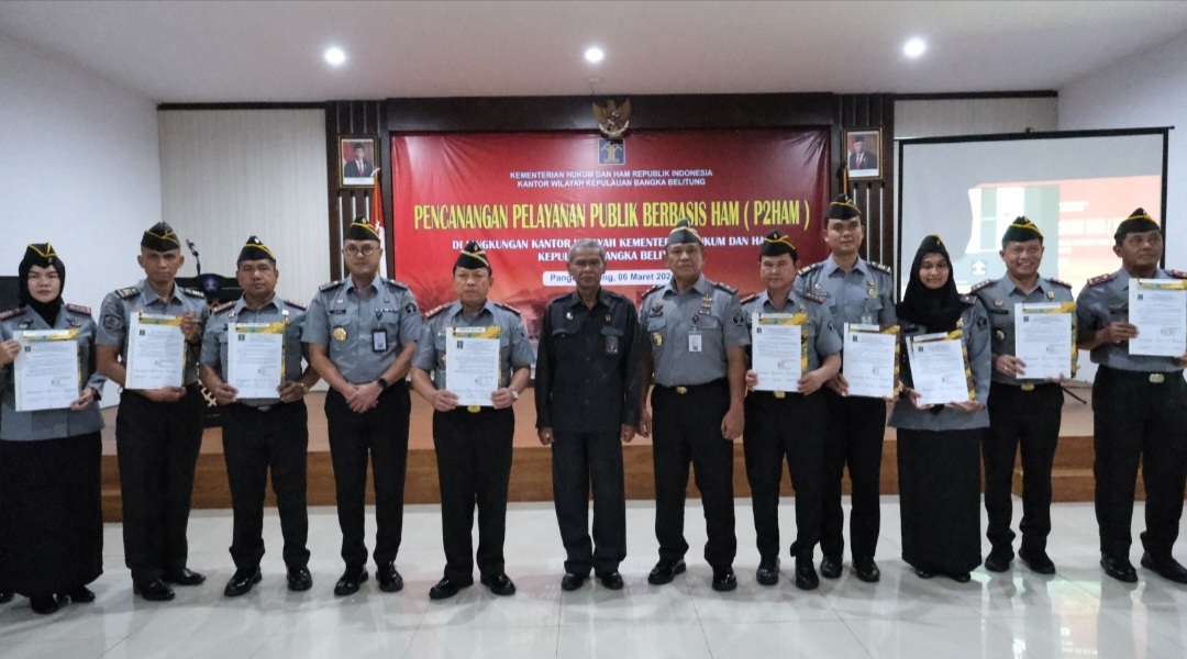 Kepala Kantor Wilayah (Kakanwil) Kementerian Hukum dan HAM Kepulauan Bangka Belitung, Harun Sulianto pimpin Deklarasi Pencanangan Pelayanan Publik Berbasis Hak Asasi Manusia (P2HAM) di lingkungan Kantor Wilayah dan Unit Pelaksana Teknis, Rabu (06/03/2024).