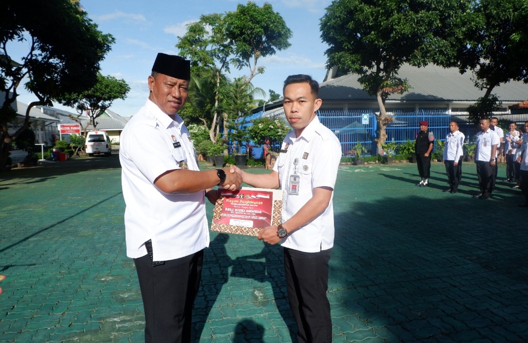 Kalapas Kelas I Bandar Lampung Serahkan Piagam Penghargaan Pegawai Teladan