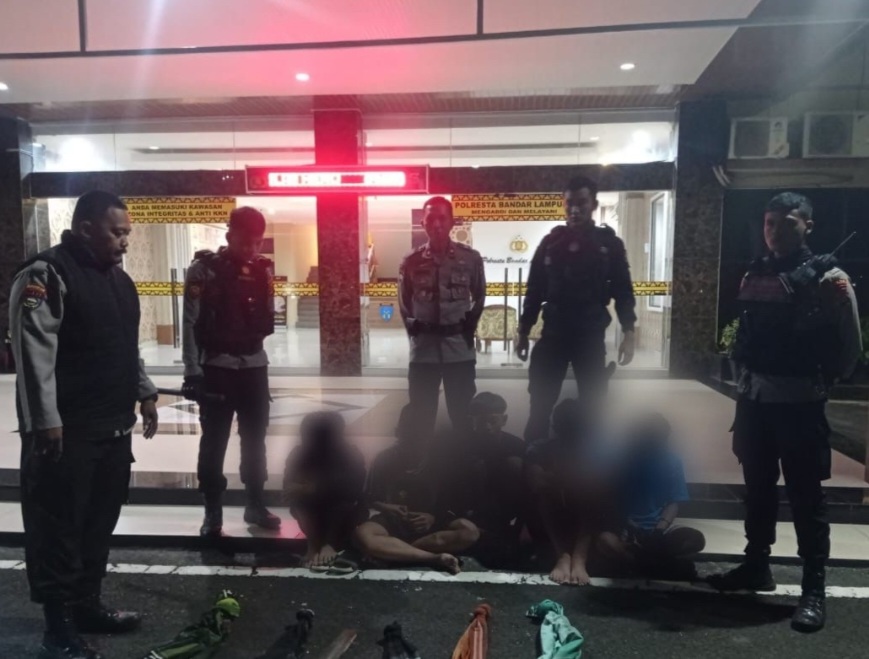 Kelima remaja ini terjaring saat patroli gabungan, Polresta Bandar Lampung dan personel BKO, Dit Samapta Polda Lampung menggelar kegiatan patroli hunting di seputaran jalan MS, Batu Bara dan jalan KH, Ahmad Dahlan, Teluk Betung Bandar Lampung, pada Sabtu (16/03/2024) dini hari.