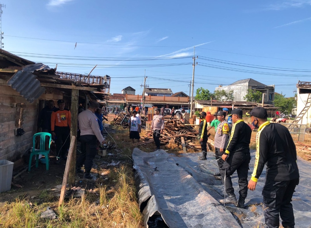 Polres Tulang Bawang dan jajaran menggelar aksi simpatik membantu para korban terdampak bencana angin puting beliung, Minggu (17/3/2024).