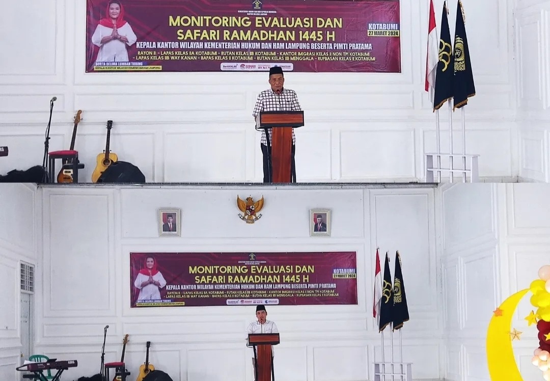 Kantor Wilayah Kementerian Hukum dan HAM (Kanwil Kemenkumham) Lampung melaksanakan Safari Ramadhan yang dilaksanakan di Aula Rutan Kelas IIB Kotabumi, Sdi Rutan Kelas IIB Kotabumi, Kamis (27/03).