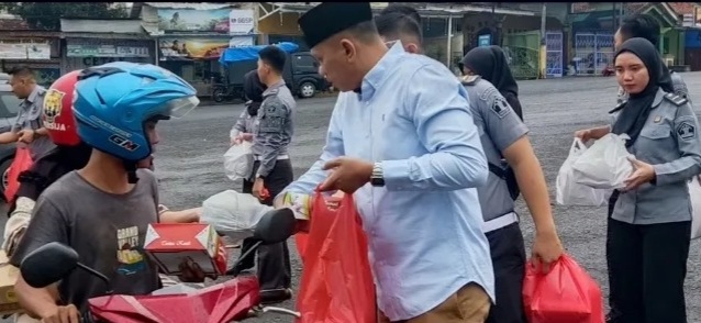 Kepala Rumah Tahanan Negara (Karutan) Kelas IIB Kotabumi, Nur Febrianto, A.Md.IP., S.H.,M.M., bersama Pejabat Struktural dan Pegawai Rumah Tahanan Negara Kelas IIB Kotabumi berbagi takjil ke masyarakat. Kegiatan ini bertempat di jalan Letjen Alamsyah Ratu Prawiranegara.