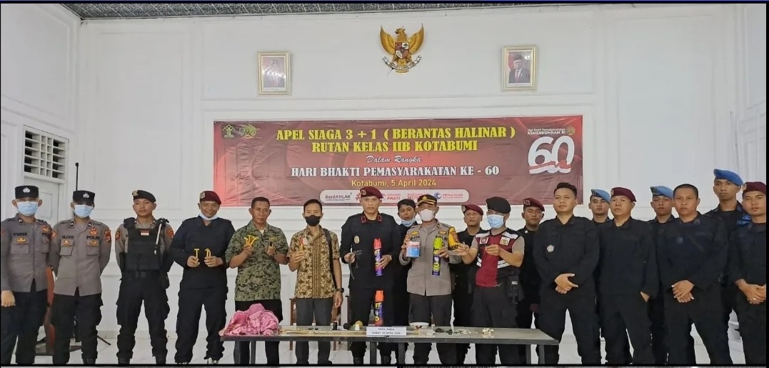 Rumah Tahanan Negara (Rutan) Kelas IIB Kotabumi melaksanakan kegiatan Apel Siaga 341 (berantas halinar) yang dilanjutkan dengan kegiatan Razia kamar hunian.
