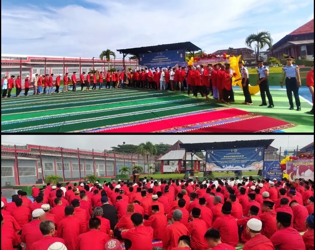 Kepala Rutan Kelas IIB Kotabumi dan Jajaran Sholat Idul Fitri Bersama Seluruh WBP dan Tahanan