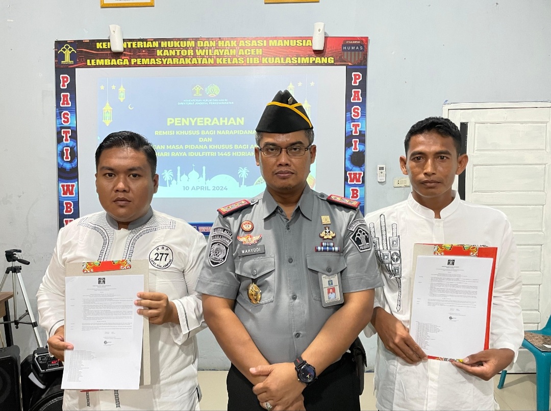 Di momen penyerahan remisi secara simbolis ini, Kalapas selaku perwakilan seluruh petugas mengucapkan Selamat Hari Raya Idul Fitri 1445 H Minal Aidzin Wal Faidzin mohon maaf lahir batin untuk seluruh Warga Binaan Lapas Kelas IIB Kualasimpang.