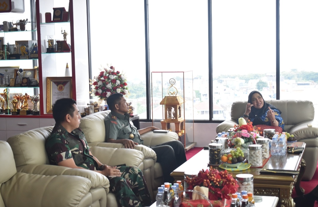 Kunjungan Danrem 043/Gatam beserta rombongan ke kantor Walikota Bandar Lampung yang berada di Jln. Dr. Susilo Sumur Batu Teluk Betung Utara Bandar Lampung, langsung disambut Walikota Bandar Lampung Hj. Eva Dwiana, S.E., dan Dandim 0410/KBL Kolonel Arh Tan Kurniawan, S.A.P., M.I.Pol.