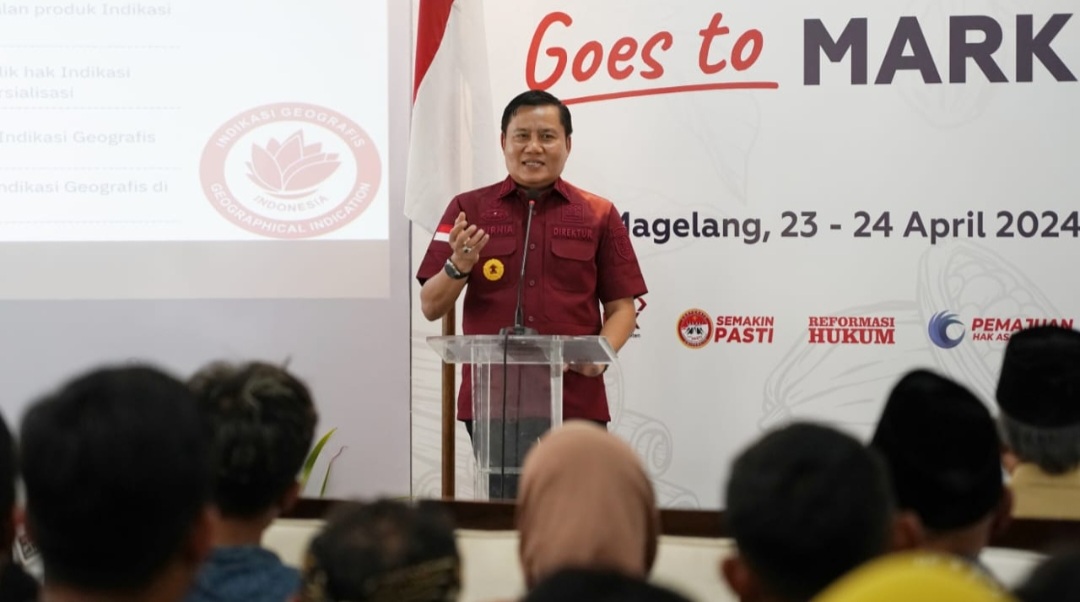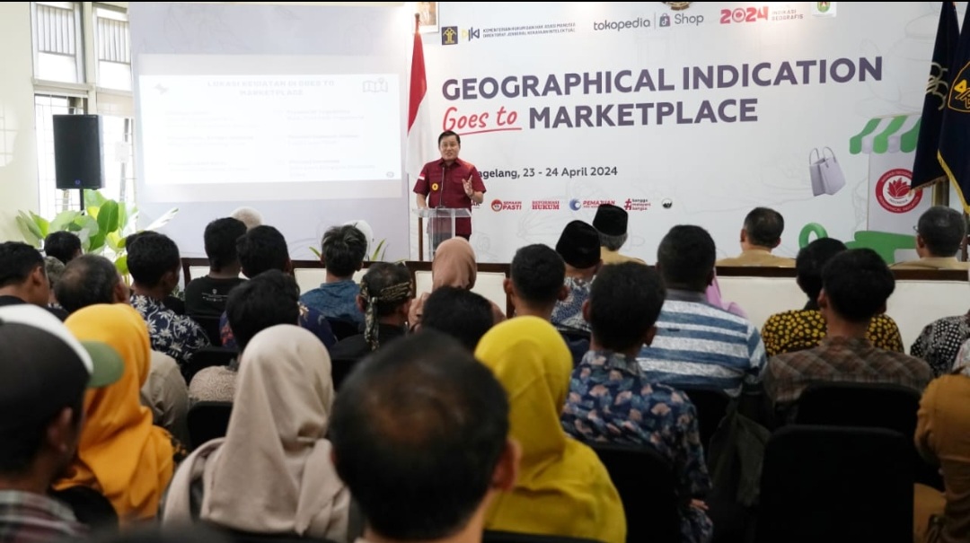 Direktur Merek dan Indikasi Geografis, Kurniaman Telaumbanua membuka rangkaian kegiatan Geographical Indication Goes to Marketplace yang menjadi program unggulan Direktorat Jenderal Kekayaan Intelektual (DJKI) Kementerian Hukum dan HAM di tahun 2024.