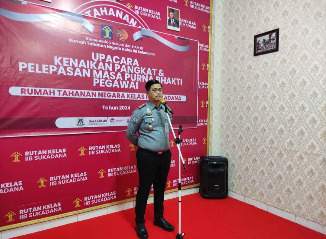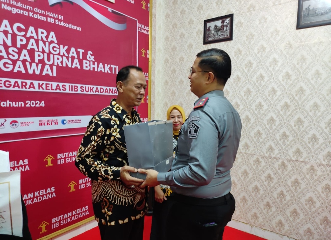 Karutan Kelas IIB Sukadana, Abdul Aziz menggelar pelepasan purna tugas terhadap salah seorang pegawai Rutan Sukadana yakni Asnawi secara resmi yang digelar di Aula Rutan Sukadana, Selasa (23/04)