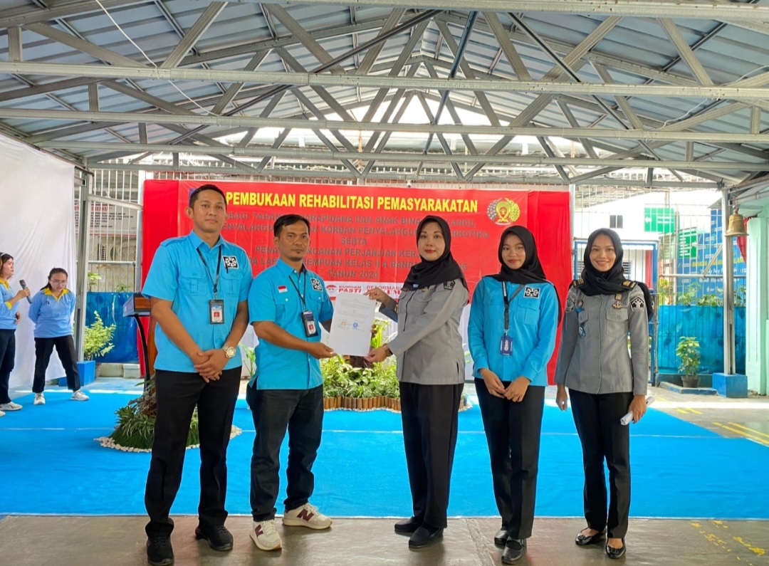 Lembaga Pemasyarakatan Perempuan Kelas IIA Bandarlampung melaksanakan kegiatan pembukaan Rehabilitasi dengan Badan Narkotika Nasional Provinsi Lampung dan Yayasan Rehabilitasi Narkoba Lentera Putih Bersinar dalam pelayanan rehabilitasi bagi Narapidana Narkotika dan dilanjutkan dengan penandatanganan perjanjian kerjasama dengan stakeholder/mitra kerja terkait.
