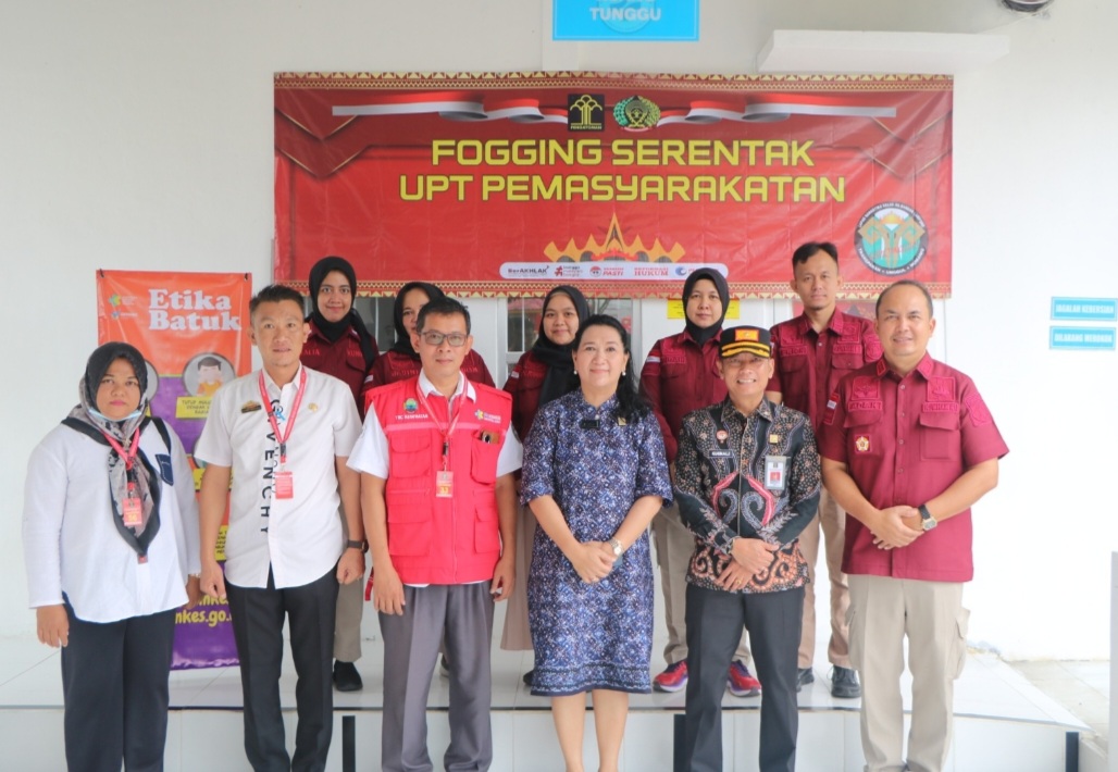 Kepala Kantor Wilayah Kementerian Hukum dan Hak Asasi Manusia Lampung Sorta Delima Lumban Tobing buka dan hadiri kegiatan fogging serentak UPT Pemasyarakan se-Lampung. Kamis, (02 Mei 2024).
