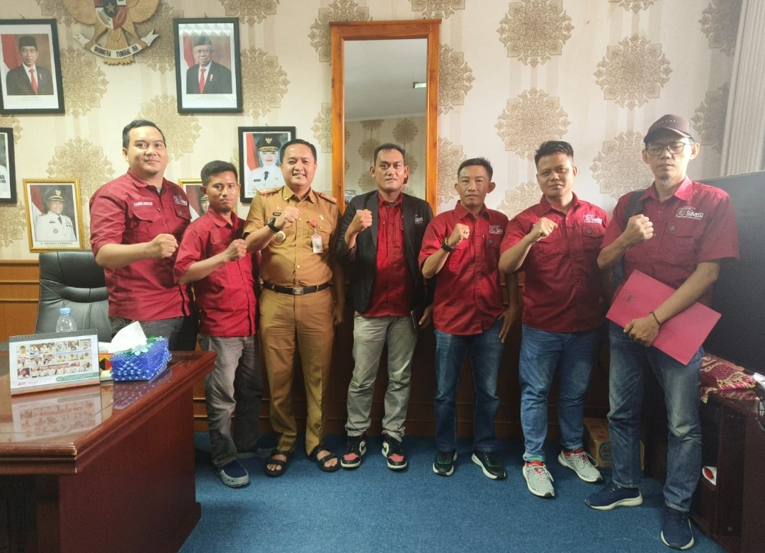 Pengurus dan anggota Serikat Media Siber Indonesia (SMSI) Lampung Selatan periode 2024-2029 menggelar kunjungan ke kantor Dinas Komunikasi dan Informatika (Diskominfo) Lamsel, Senin (6/5/2024).