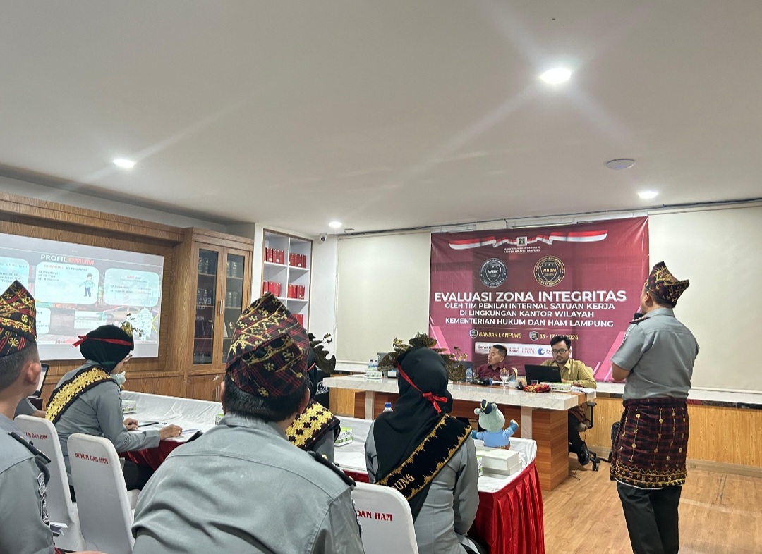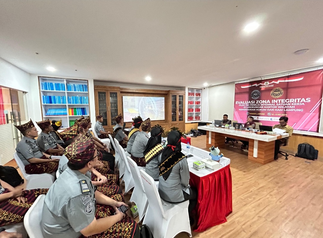 Dalam rangka evaluasi pembangunan zona integtritas (ZI) menuju wilayah bebas dari korupsi (WBK), Rutan Kota Agung mengadapi desk evaluasi dihadapan Tim Penilai Internal Inspektorat Jenderal Kemenkumham RI pada Selasa,(14/05/2024).