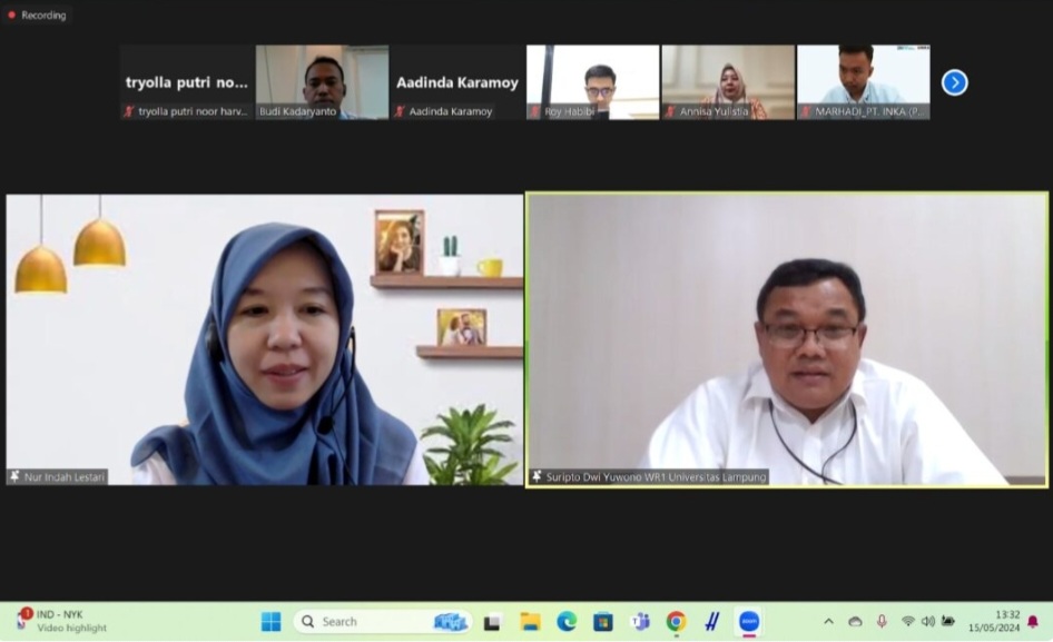 Untuk meningkatkan partisipasi mahasiswa Universitas Lampung (Unila), Lembaga Pengembangan Pembelajaran dan Penjaminan Mutu (LP3M) serta Tim Pusat Pengembangan Kurikulum dan MBKM, menggelar sosialisasi Program Kampus Merdeka Periode Ganjil pada Rabu, 15 Mei 2024, via zoom meeting.