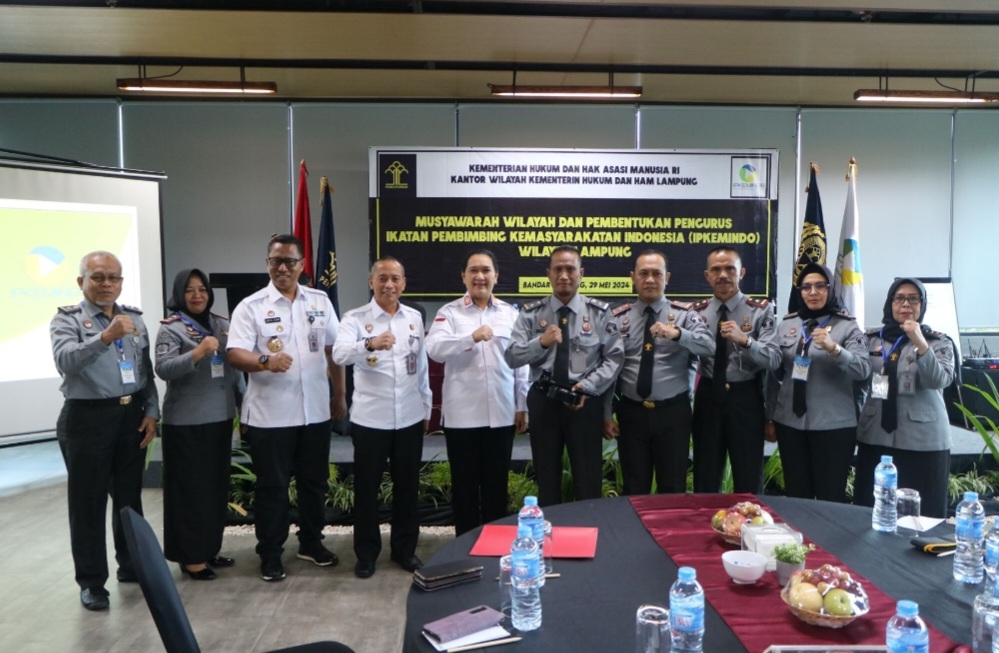 Bentuk kepengurusan baru periode 2024-2027, Ikatan Pembimbing Kemasyarakatan Indonesia (IPKEMINDO) Wilayah Lampung gelar Musyawarah Wilayah (Muswil) yang diadakan di Kyriad Hotel Lampung. Rabu, (29/05/2024).