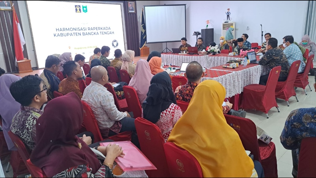 Kantor Wilayah Kementerian Hukum dan HAM Kepulauan Bangka Belitung bersama Pemerintah Kabupaten Bangka Tengah selenggarakan rapat harmonisasi terhadap lima Rancangan Peraturan Bupati (Raperbup) di Balai Pengayoman Kantor Wilayah, Kamis (30/05/2024).