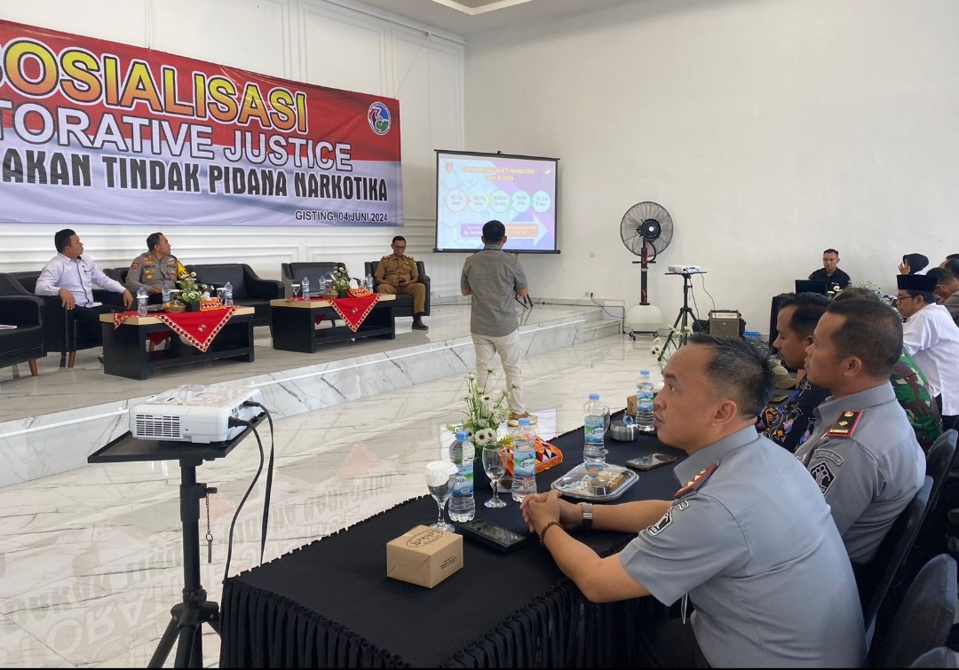 Kepala Lembaga Pemasyarakatan (Kalapas) Kelas IIB Kotaagung Andi Gunawan ikuti sosialisasi tentang teknis restorative justice dan penindakan tindak pidana narkotika yang diselenggarakan oleh Polres Tanggamus, Selasa (4/6/2024).