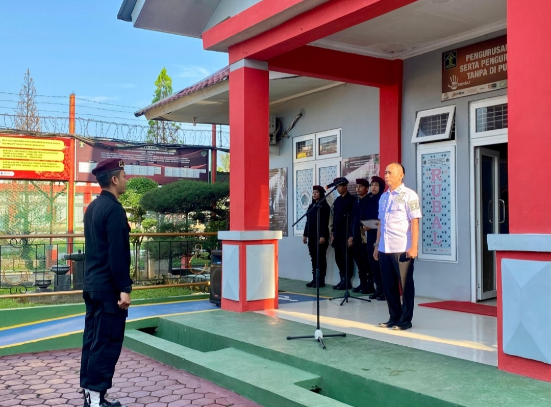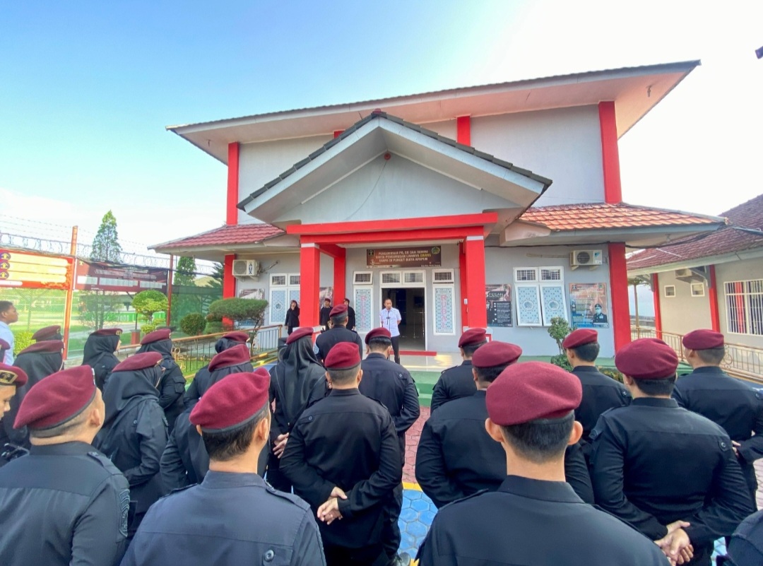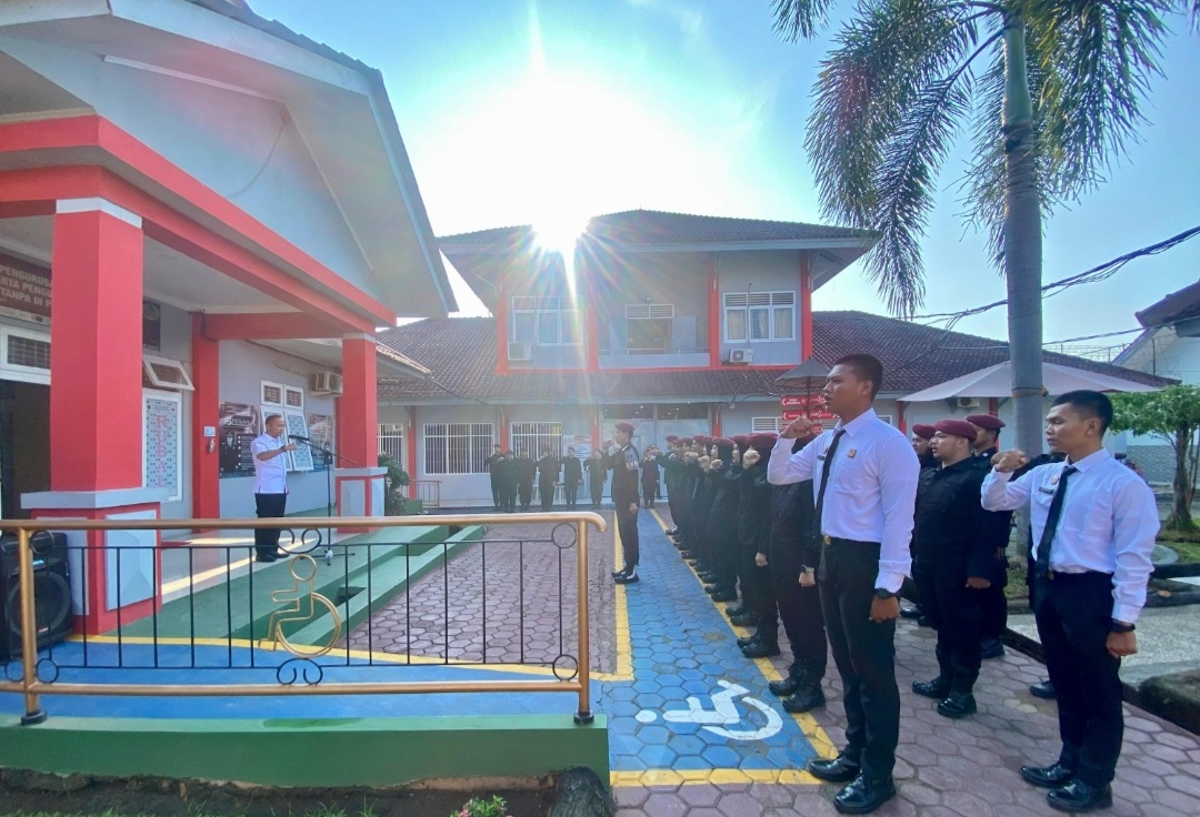 Kepala Divisi Pemasyarakatan (Kadivpas) Kanwil Kemenkumham Lampung, Kusnali pimpin Apel pagi seluruh jajaran Rutan Kelas I Bandar Lampung dalam rangka monitoring perkembangan pembangunan Zona Integritas menuju Wilayah Bebas dari Korupsi (WBK), Rabu (05/06).