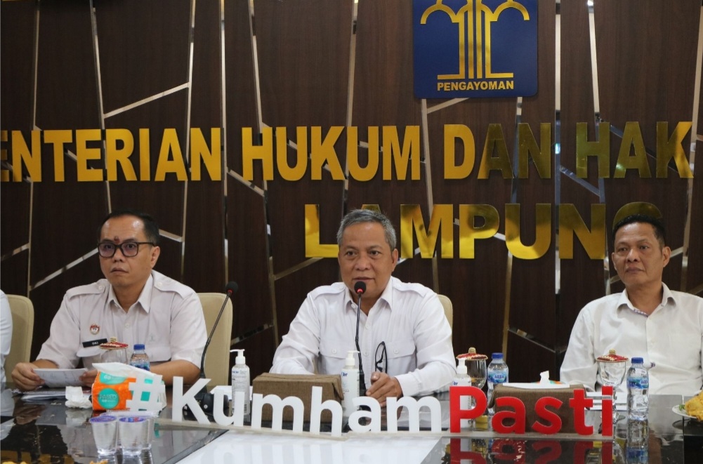 Kantor Wilayah Kementerian Hukum dan HAM (Kemenkumham) Lampung bersama Badan Strategi Kebijakan Kemenkumham menyelenggarakan kegiatan Sosialisasi Pengukuran Indeks Kualitas Layanan Kesekretariatan secara virtual. Kegiatan ini dibuka oleh Kepala Divisi Administrasi, M. Ikmal Idrus dan dihadiri oleh Kepala Bidang HAM, Basnamara, Analis Kebijakan Madya Oki Wahju Budijanto beserta  Tim dari Badan Strategi Kebijakan Kemenkumham, Rabu (12/06/2024).