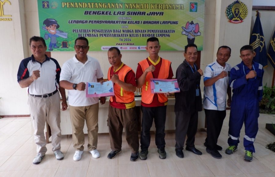 Di akhir kegiatan kalapas Saiful Sahri dan Rusmadi membagikan Sertifikat kepada warga binaan yang mengikuti pelatihan Pengelasan. “kegiatan pelatihan ini melibatkan mitra terkait merupakan bentuk sinergitas kami dengan Stakeholder untuk mewujudkan Lapas Kelas I Bandar Lampung yang semakin Pasti Untuk Kinerja yang semakin Berdampak” tutur Kalapas Saiful Sahri.