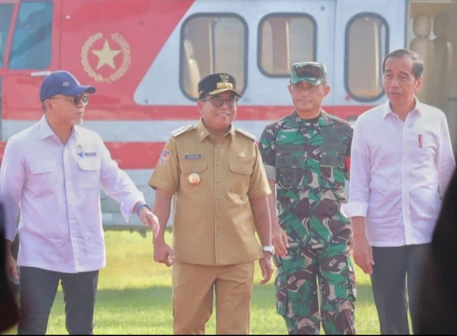 Turut menyambut kunjungan kerja Presiden RI Pj. Gubernur Lampung Dr. Drs. Samsudin, S.H., M.H., M.Pd., Pangdam II/Swj Mayjen TNI M. Naudi Nurdika, S.I.P., M.Si, M.Tr(Han), dan Kapolda Lampung Irjen Pol Helmy Santika, S.H., S.I.K., M.Si.