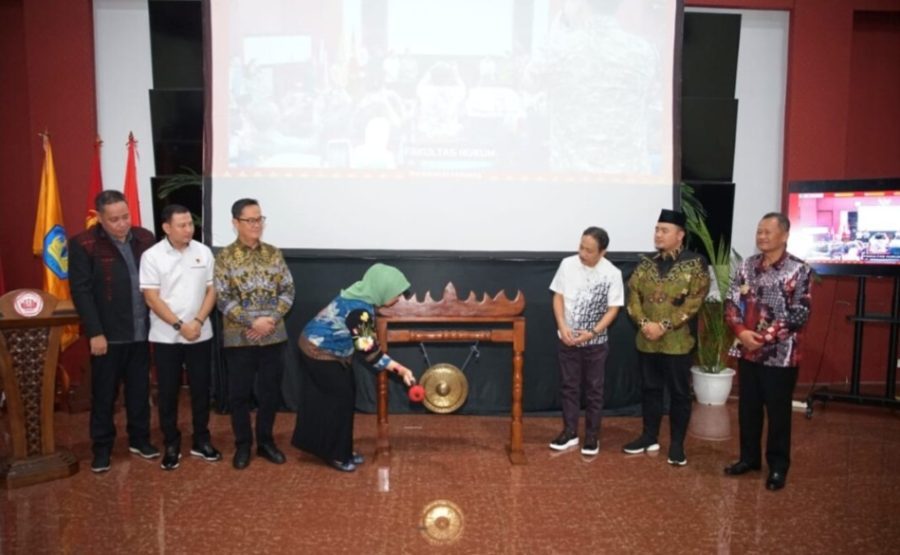Turut hadir Wakil Rektor Bidang Kemahasiswaan dan Alumni Dr. Anna Gustina Zainal, S.Sos., M.Si., para wakil dekan FH, Ketua LPPM Dr. Eng. Ir. Dikpride Despa, S.T., M.T., IPM., ASEAN Eng, akademisi FH Unila, serta mahasiswa dan masyarakat umum.