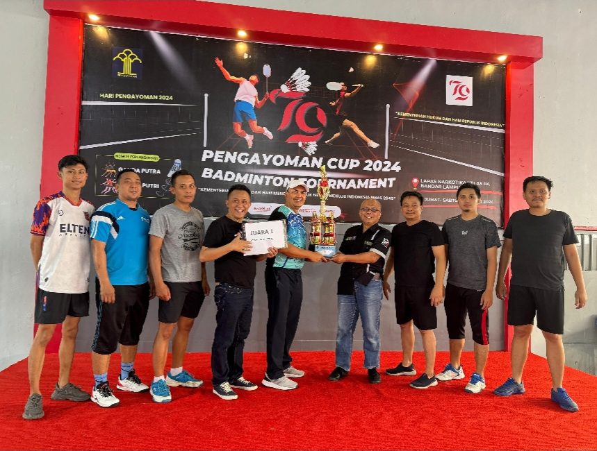 Kepala Divisi Administrasi, M.Ikmal Idrus juga turut menyaksikan jalannya Tournament Olahraga Badminton tersebut yang di gelar di Lapas Narkotika Kelas IIA Bandar Lampung yang dimulai sejak tanggal 26 – 27 Juli 2024. Di partai final Tim Beregu Ganda Putra yang di wakili oleh Pegawai Kanwil Kemenkumham Lampung termasuk Kepala Bagian Umum Denial Arif meraih Juara 1.
