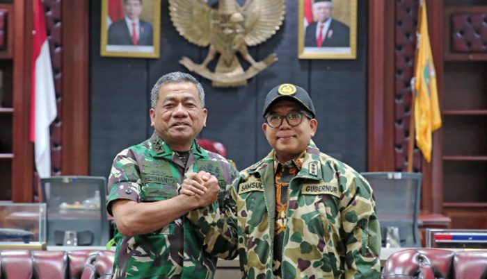 Pj. Gubernur Lampung Samsudin menerima kunjungan Asisten Potensi Maritim (Aspotmar) Kasal Mayjen TNI Mar Hermanto terkait kegiatan ketahanan pangan di Piabung Pesawaran pada 10 Juli 2024 mendatang, bertempat di ruang kerja Gubernur Lampung, Jumat (5/7/2024).