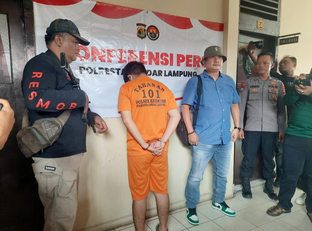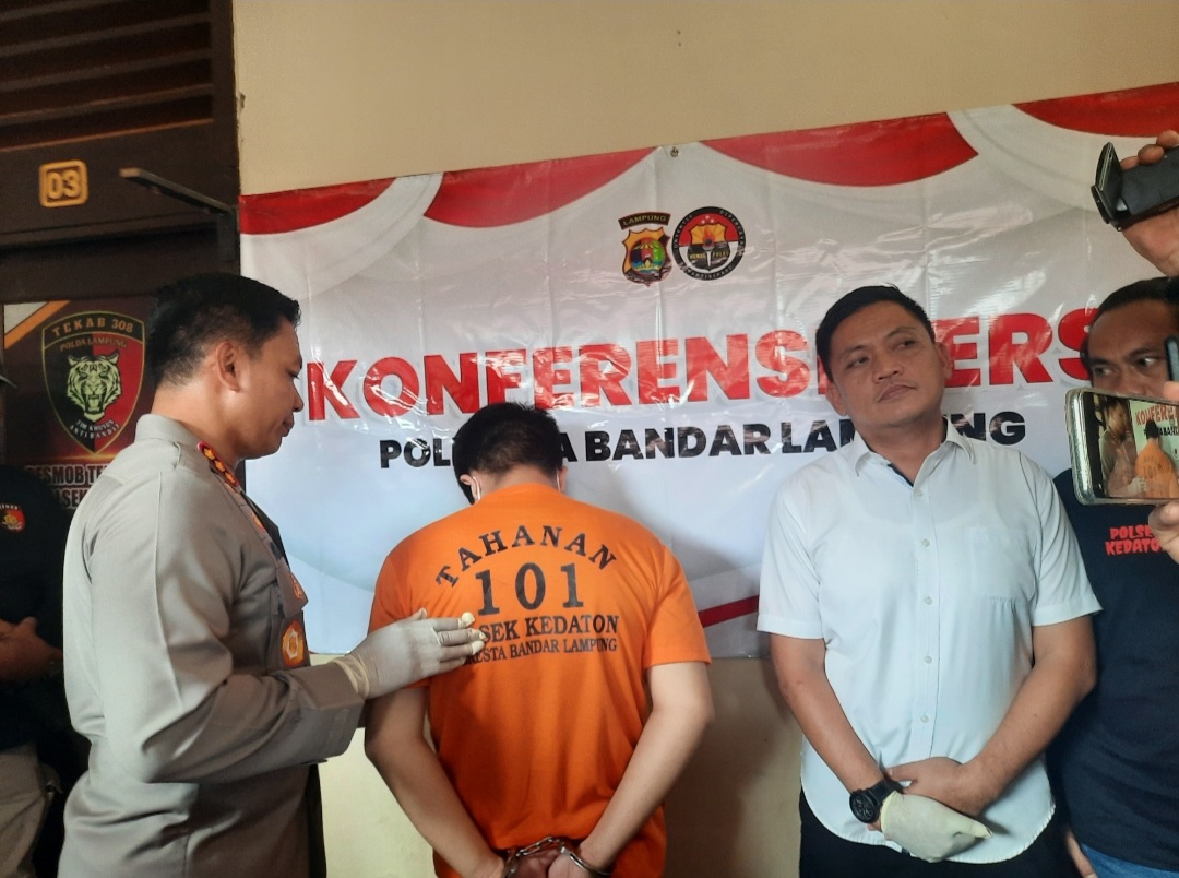 Tim Tekab 308 Polsek Kedaton Polresta Bandar Lampung berhasil menangkap Rachmadan Fitrahman (24) pelaku pencurian mobil Daihatsu Terios hitam dengan nomor polisi BE 1539 AMA milik Farly Arlan Manawan yang terparkir di halaman parkir Rumah Sakit Advent. Hal tersebut diungkapkan Kapolresta Bandar Lampung, Kombes Pol Abdul Waras didampingi Waka Polresta Bandar Lampung AKBP Erwin Irawan saat konferensi pers di Polsek Kedaton, Jumat (16/8/2024).