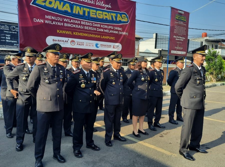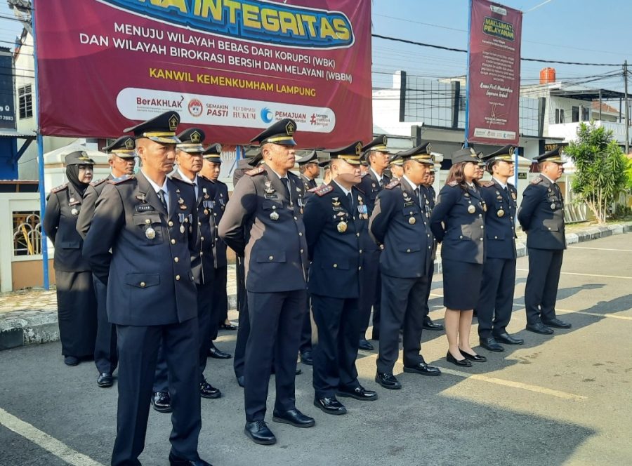 Kegiatan yang bertemakan “Kemenkumham Mengabdi untuk Negeri Menuju Indonesia Emas 2045” ini dipimpin langsung oleh Kepala Kantor Wilayah Kemenkumham Lampung, Sorta Delima Lumban Tobing yang dihadiri oleh seluruh pimpinan tinggi dan Kepala Unit Pelaksana Teknis jajaran Kanwil kemenkumham Lampung.